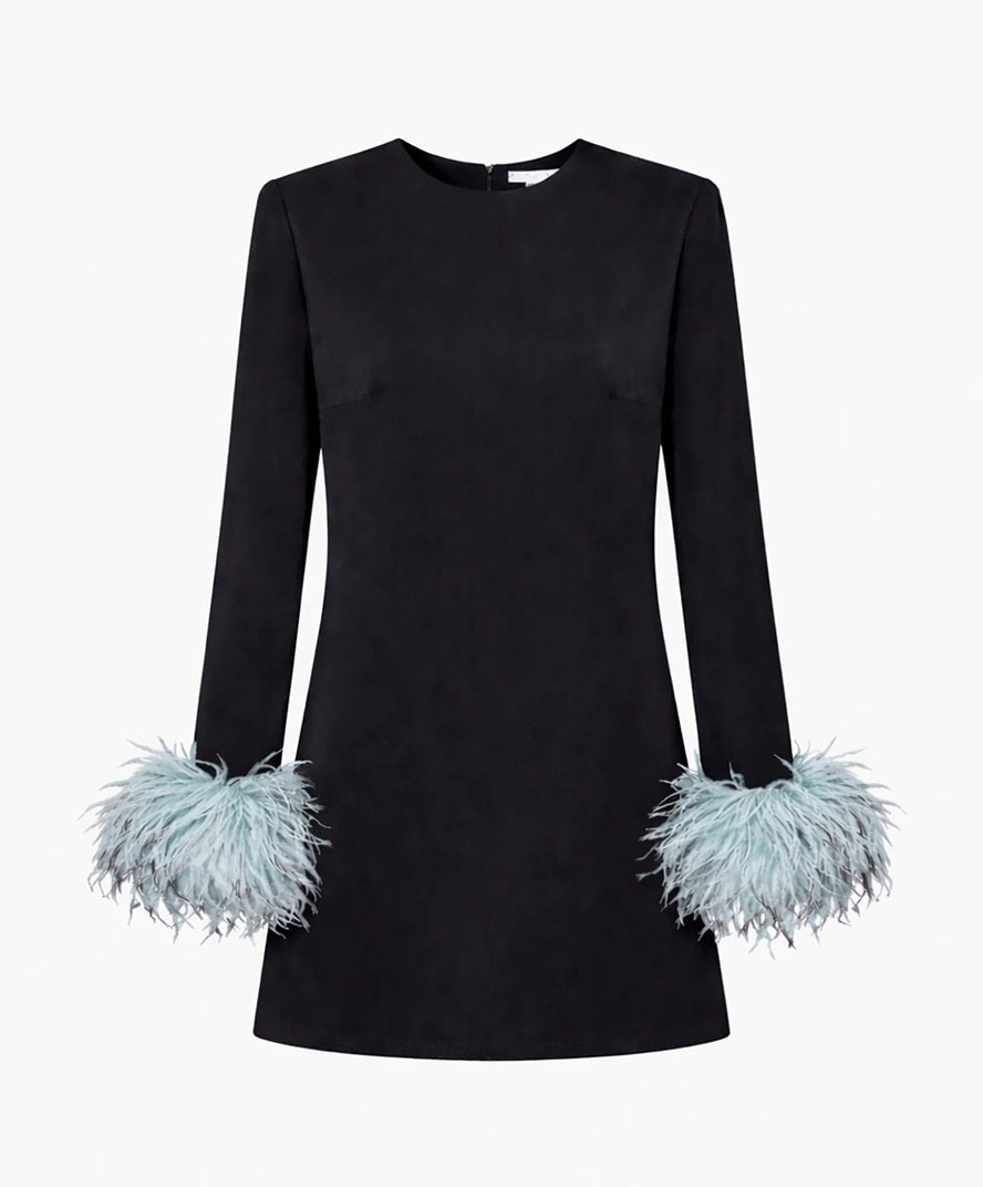 Kyte suggests choosing pieces where feathers appear as a detail rather than the entire garment. “A beautifully cut coat with feather cuffs or a simple dress with a feather hem can look incredibly elegant,” she says, “the silhouette is doing the work, and the feathers add a bit of movement.”