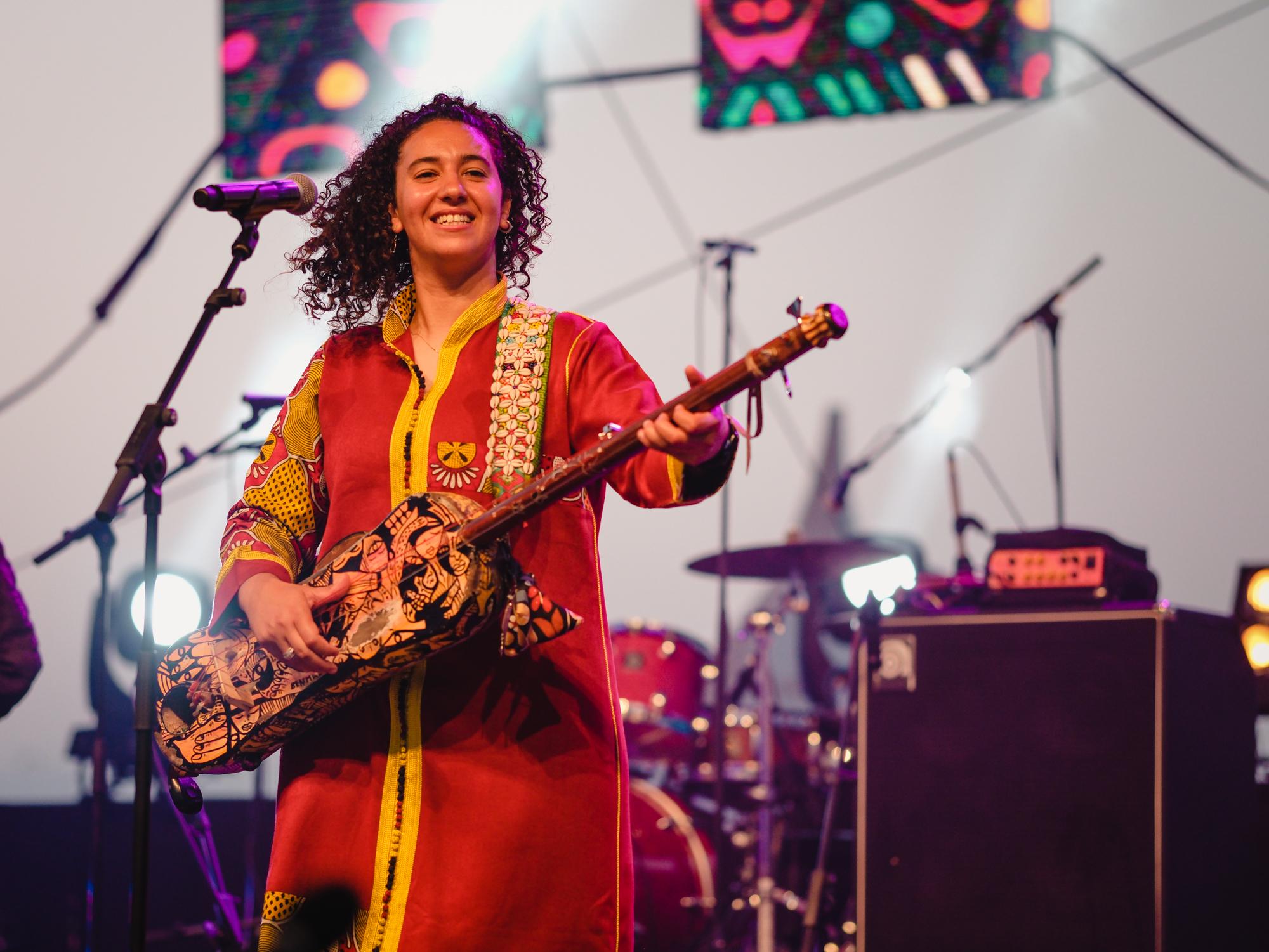 The 26-year-old artist was born in Essaouira and taught herself to play the traditional guembri instrument.