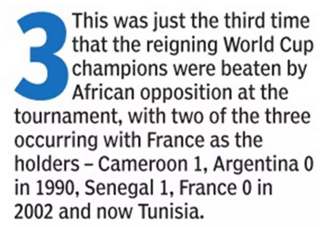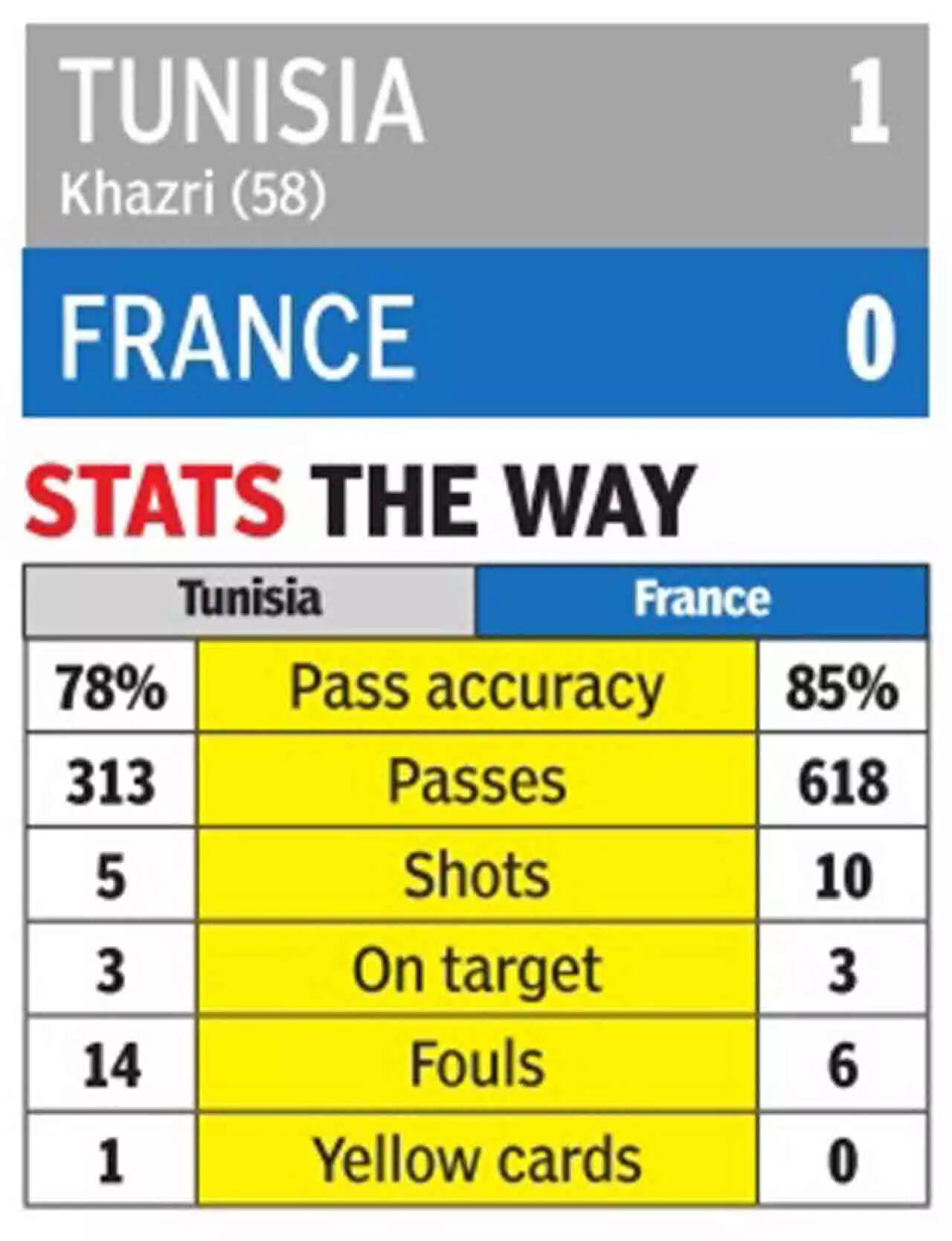 DOHA: It was a very changed, very different, almost unrecognizable line-up that Didier Deschamps pencilled in for this tie. The change of guise did not rattle the Tunisians in the least. If anything, it spurred them on, sensing a glimmer. Tunisia threw everything they had, the kitchen sink, the community bath and then some more at France in their mad quest to make it out of their group for the knockouts.
