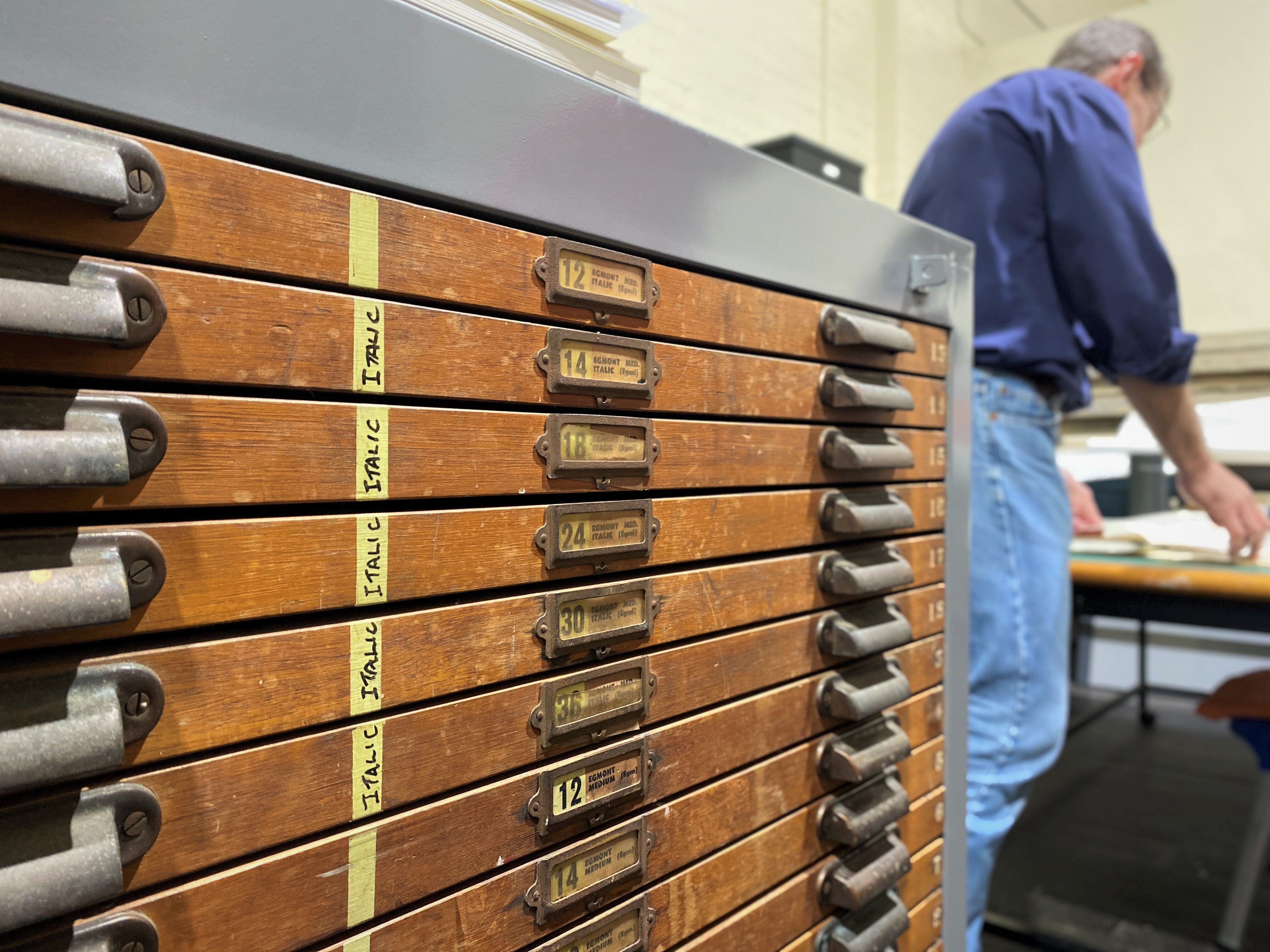 "With letterpress … if I want 24-point Times New Roman italic bold, I've got to have a tray of that [type]."