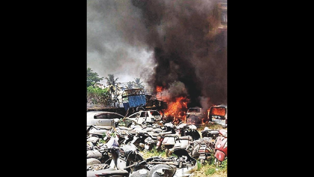 The fire control room received a call about the fire next to Kengeri police station at 1.38pm. According to DCP (west) Sanjeev Patil, at least 12 vehicles were majorly damaged and a few others suffered minor damage. Vehicles that caught fire were to do with rioting, theft and robbery cases, among others. Some had been seized more than 10 years ago.