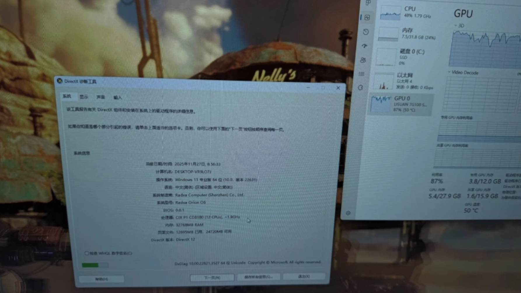 A video on Bilibili showed a Lisuan 7G106 graphics card hooked up to an ARM-based system featuring an ARM-based 12-core CP8180 CPU. The video showed the system running 3DMark's Steel Nomad benchmark along with Task Manager on top, showing that the GPU clearly has 3D acceleration support within the ARM version of Windows 11. Furthermore, dxdiag was also shown to reveal DX12 support in the driver.