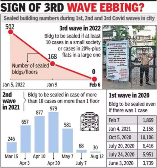 The BMC rule during the third wave called for an entire building to be sealed only if at least 10 Covid cases are detected in various flats in a small building or more than 20% of the occupied flats have patients in a large society.