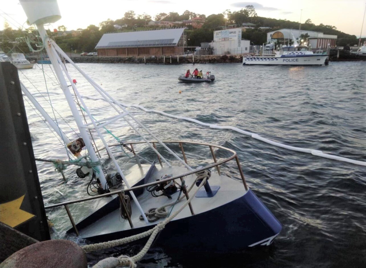 Fire and Rescue NSW were called to reports of a partially submerged boat around 3:30am, which was discovered by the captain and crew.