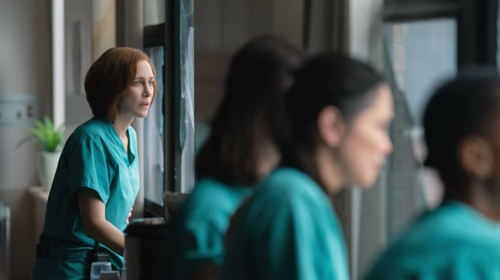 On numerous occasions throughout its eight-episode run, the gripping and at times emotionally exhausting Apple TV+ series “Five Days at Memorial” is reminiscent of 1970s disaster films such as “The Poseidon Adventure” and “The Towering Inferno,” in that a catastrophic event occurs and we follow a disparate group of people who will have to make some incredibly stressful, life-or-death decisions as they try to survive. In scene after scene, the special and practical effects create viscerally effective, heart-pounding scenarios.