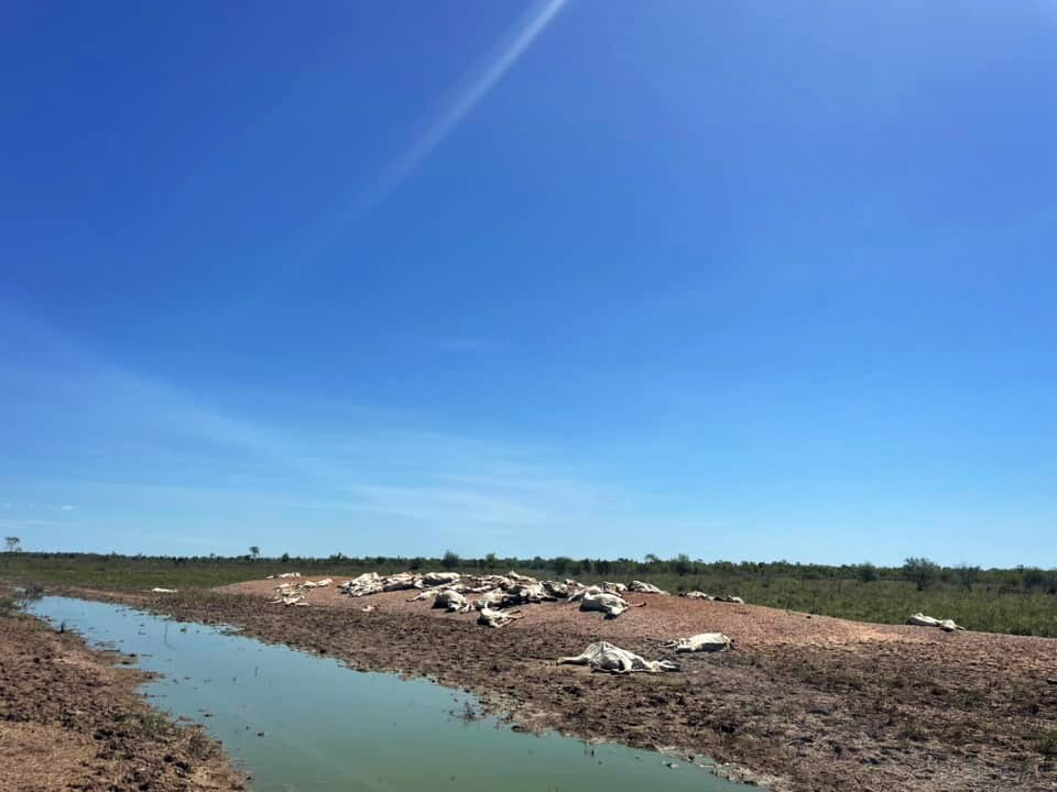 "When you drive into Burketown all you can see is hundreds of dead cattle piled on top of each other," he said.