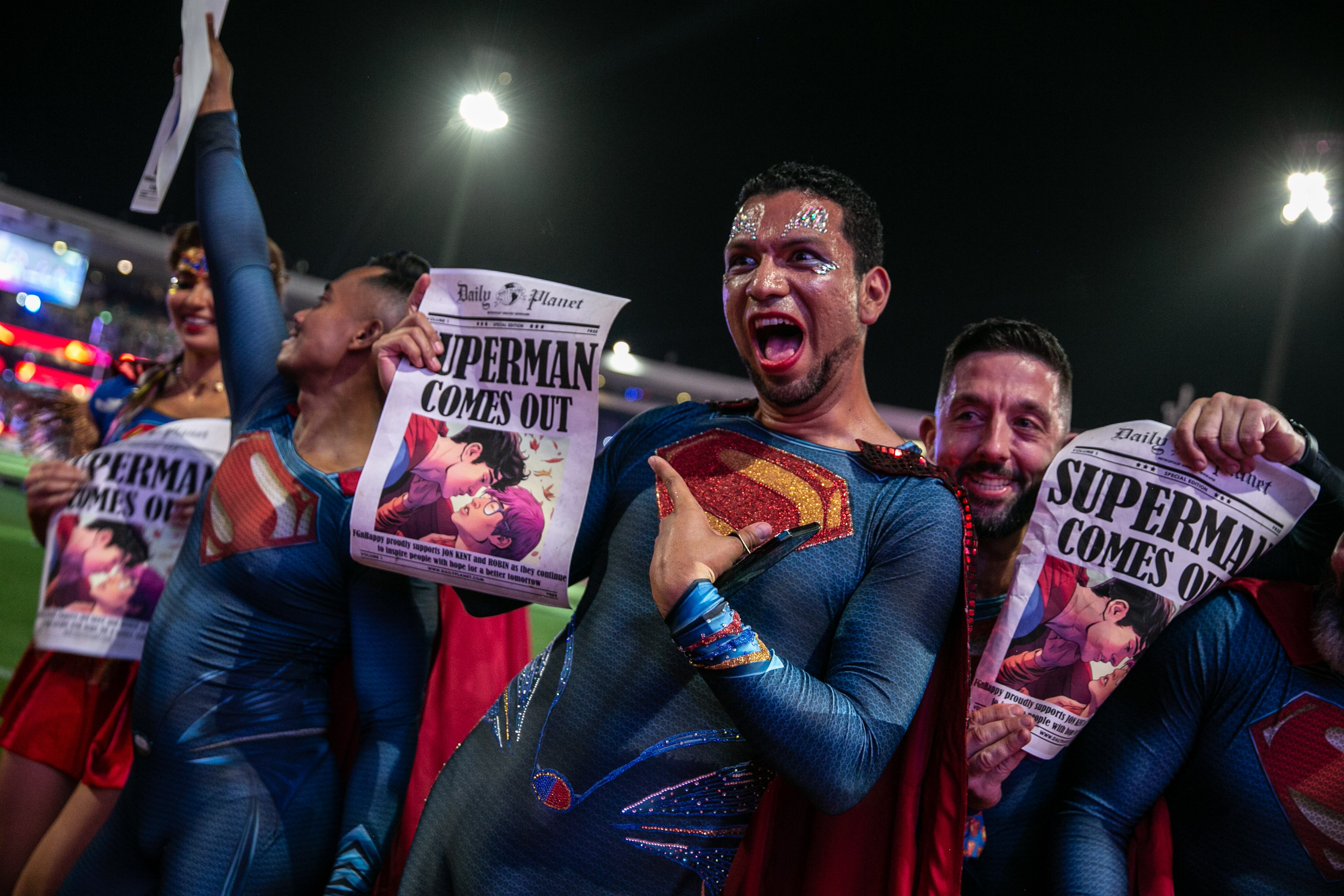At one point before the parade, the audience erupted as two same-sex couples passionately embraced on the kiss cam, which started a chain reaction of affection among the crowd.