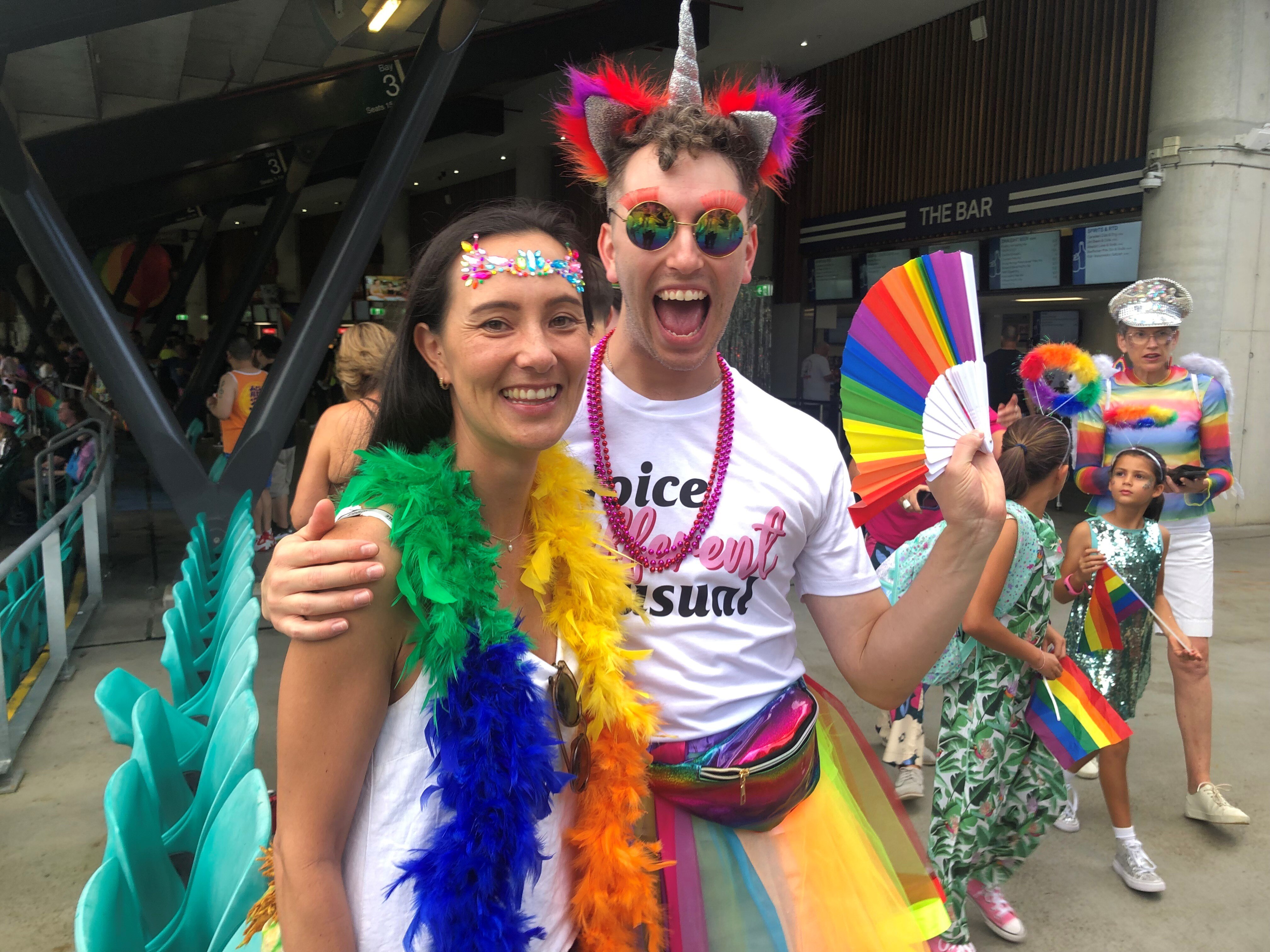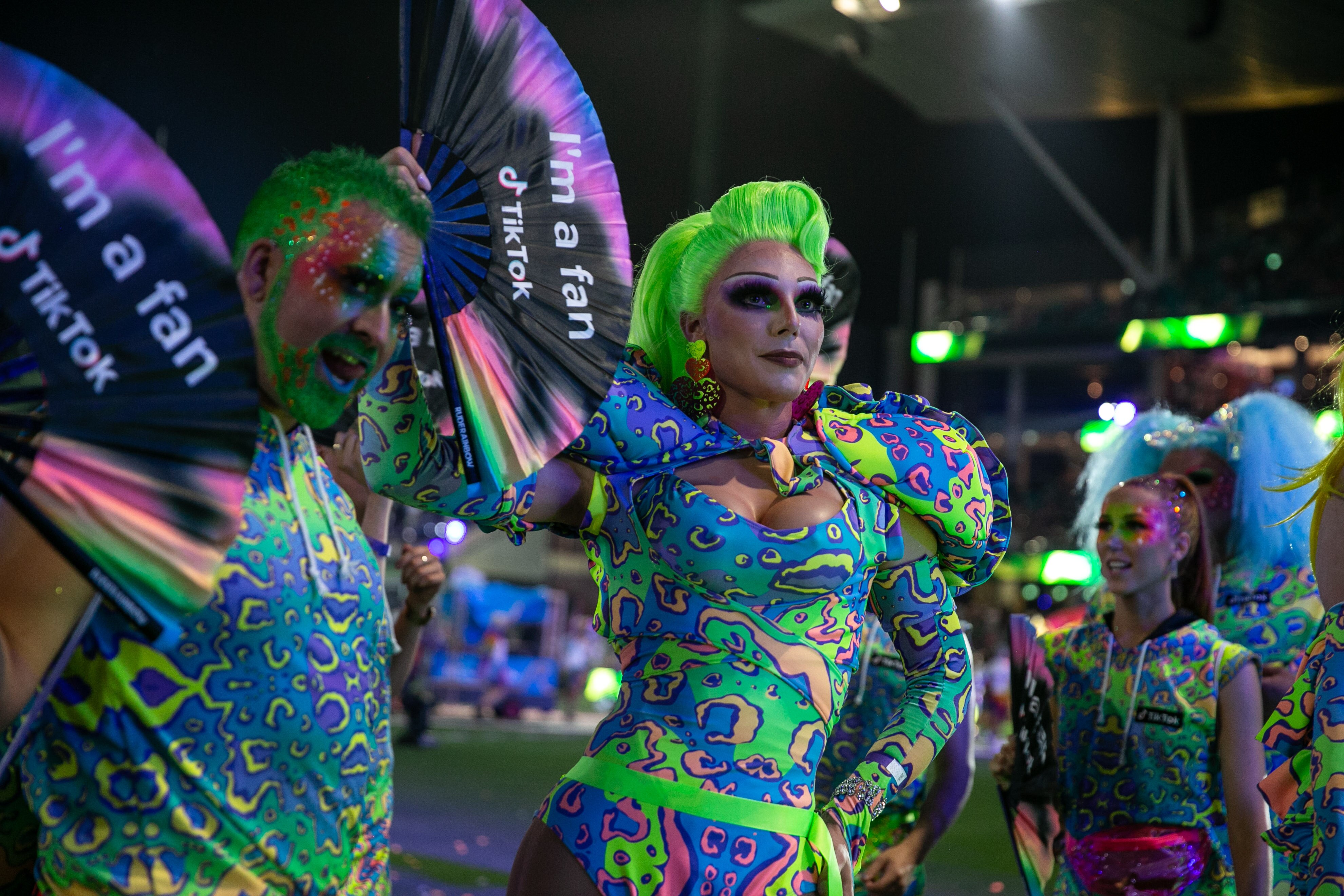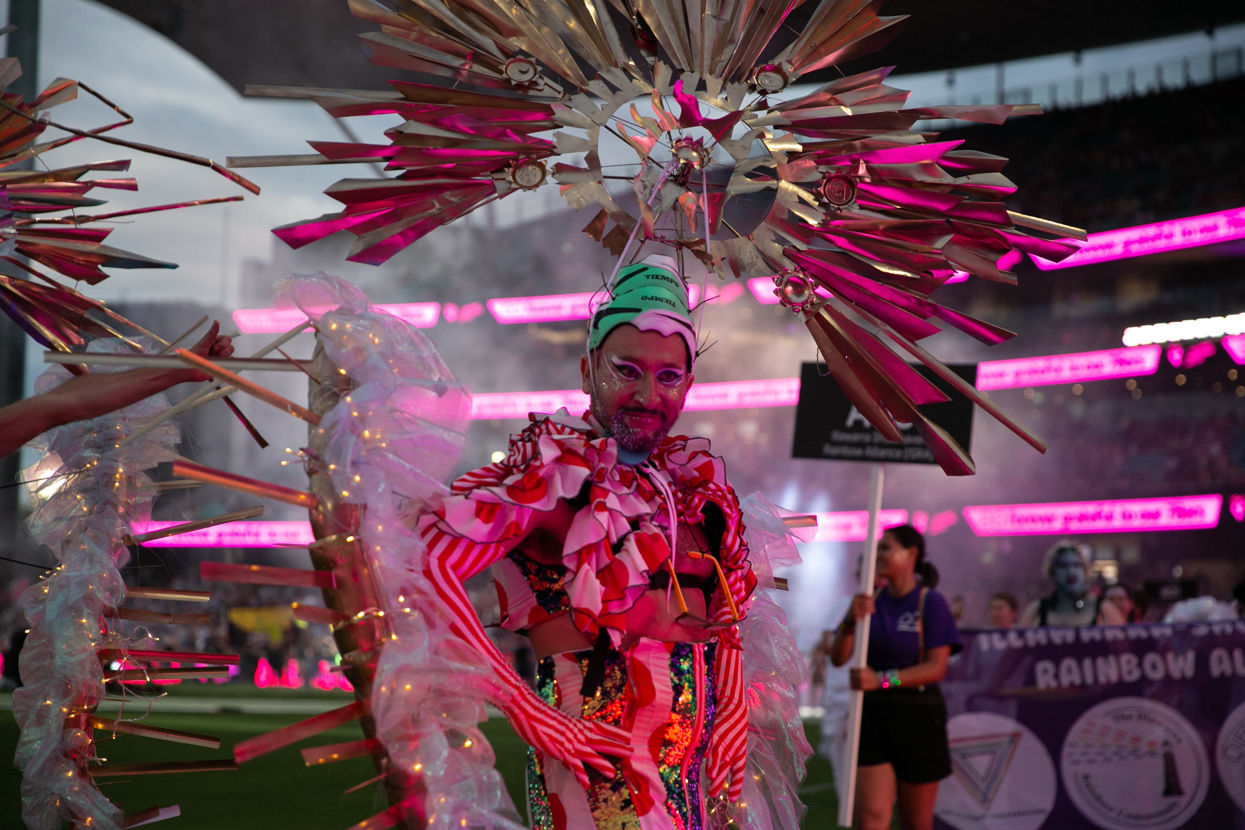 More than 40,000 spectators sang, danced and embraced as organisations, businesses and advocacy groups showed their support for LGBTQ+ communities, marching or rolling on floats around the Sydney Cricket Ground (SCG).