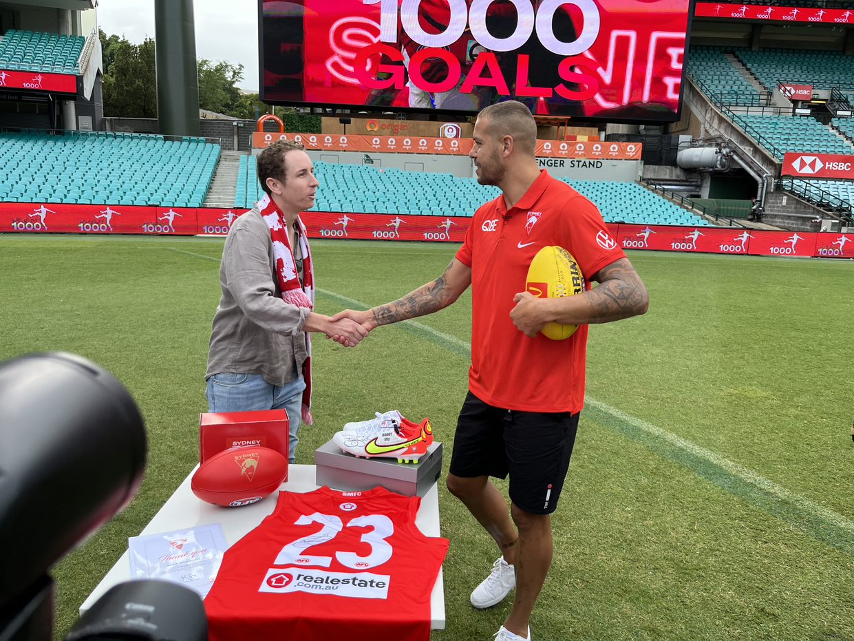The Swans gave Wheeler a signed guernsey, ball, boots and five years' membership to the SCG.