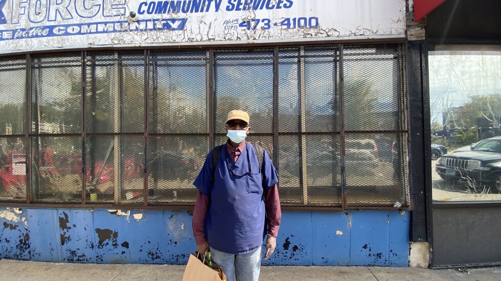 Bobby McGhee walked down a street on the West Side carrying a load of groceries on Wednesday. The large brown bag contained his favorites of cabbage and sweet potatoes and enough produce to last over a week.