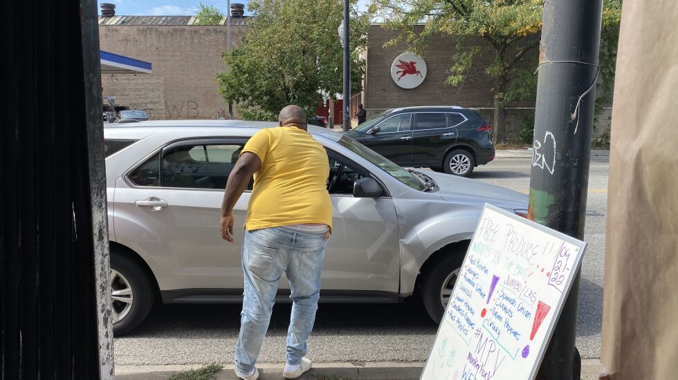 The giveaways are open to the public — no registration necessary — and in the second go-around, the bags quickly flew off the table that the center had set up on Cicero Avenue. Drivers passing by slowed down and lowered their windows to receive a bag; others, like McGhee, just walked right up.