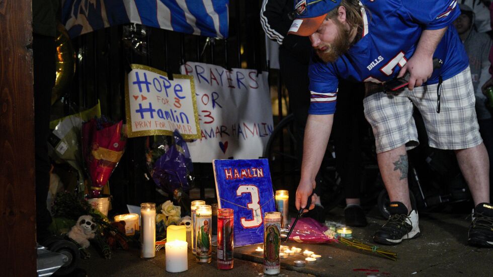 Last Monday night, Buffalo played Cincinnati and Damar Hamlin’s heart stopped after he made a tackle. He stood up. He stepped toward his teammates. Then he fell, his body toppling over like a toddler who has fallen asleep standing.