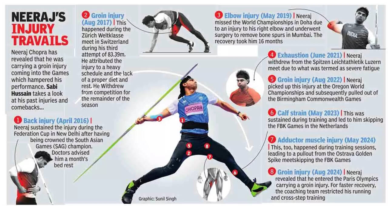 One saw two faces of Neeraj Chopra here. One after the qualification race on Tuesday. He had aced it, topped it with a throw of 89.34m. He was relaxed, smiling when he came to the mixed zone. There was no hint of apprehension, anxiety or any discomfort. He did not reveal anything about the groin niggle that had started to bother him again, putting doubts in his mind.