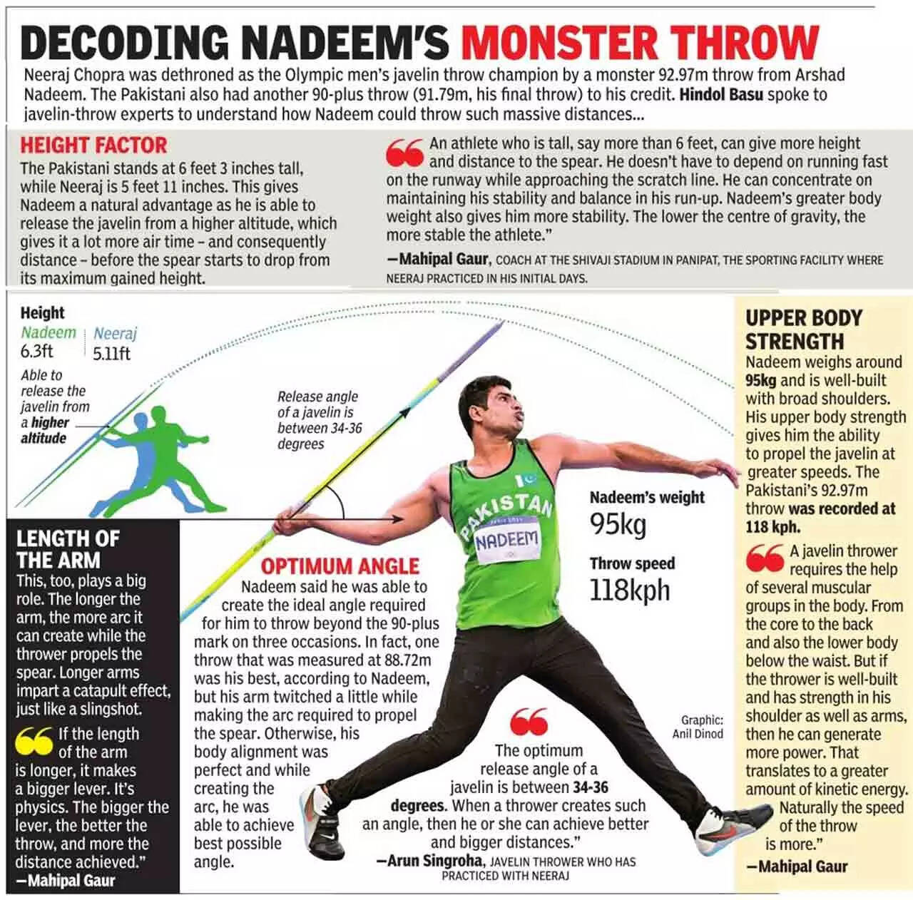 After he fouled his first throw, he was still relaxed. Then came the bolt. He saw Nadeem Arshad's javelin travelling in the air, like a dream. It kept going on and on. When it landed, Neeraj's body language changed. 92.97m! How was he going to catch up with that?
