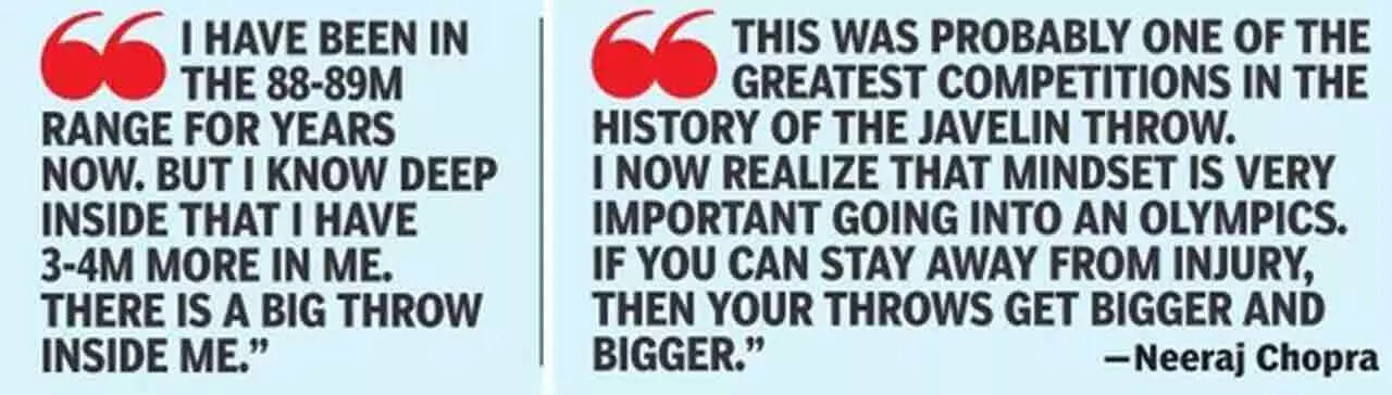 "I have been in the 88-89m range for years now. But I know deep inside that I have 3-4m (more) in me. There is a big throw inside me," Neeraj said later.