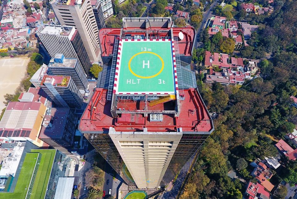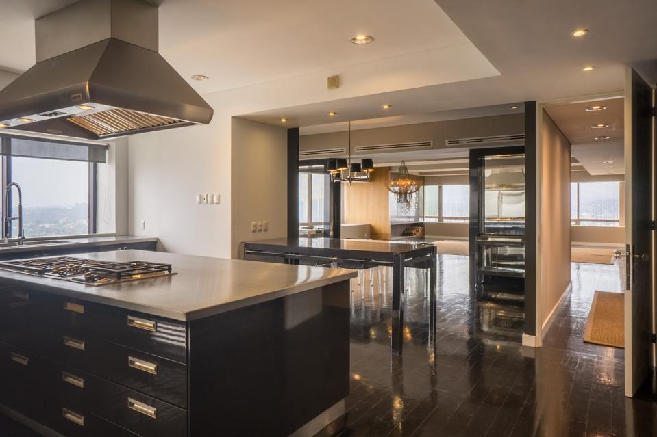 This sophisticated penthouse is situated in Torre Lomas, one of Mexico's most exclusive residential towers, located in the ritzy Lomas de Chapultepec neighborhood. The living and dining area overlooks the Bosque de Chapultepec park and out towards the Mexico City mountains.