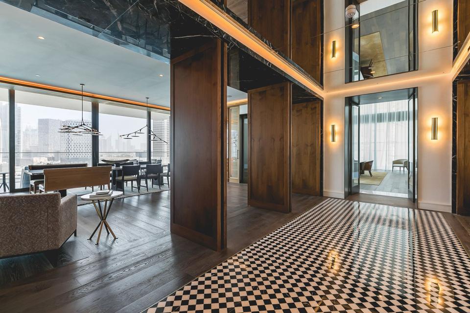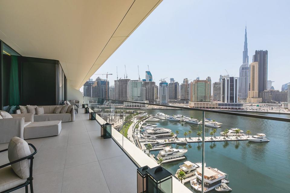 This nearly 8,000-square-foot penthouse is one of only 39 units in the Dorchester Collection's newest addition to the Marasi Marina. The modern four-bedroom unit overlooks the marina from a glass-walled balcony and is close to The Dubai Mall and Dubai's downtown area.