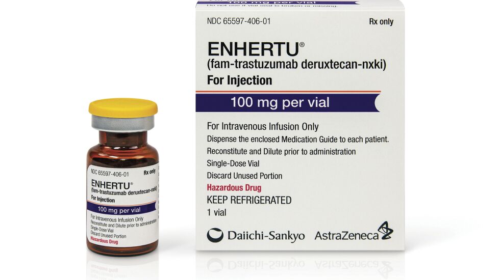 The drug, called Enhertu, is an an antibody-chemotherapy combination that’s administered intravenously and belongs to a relatively new class of drugs called antibody-drug conjugates.