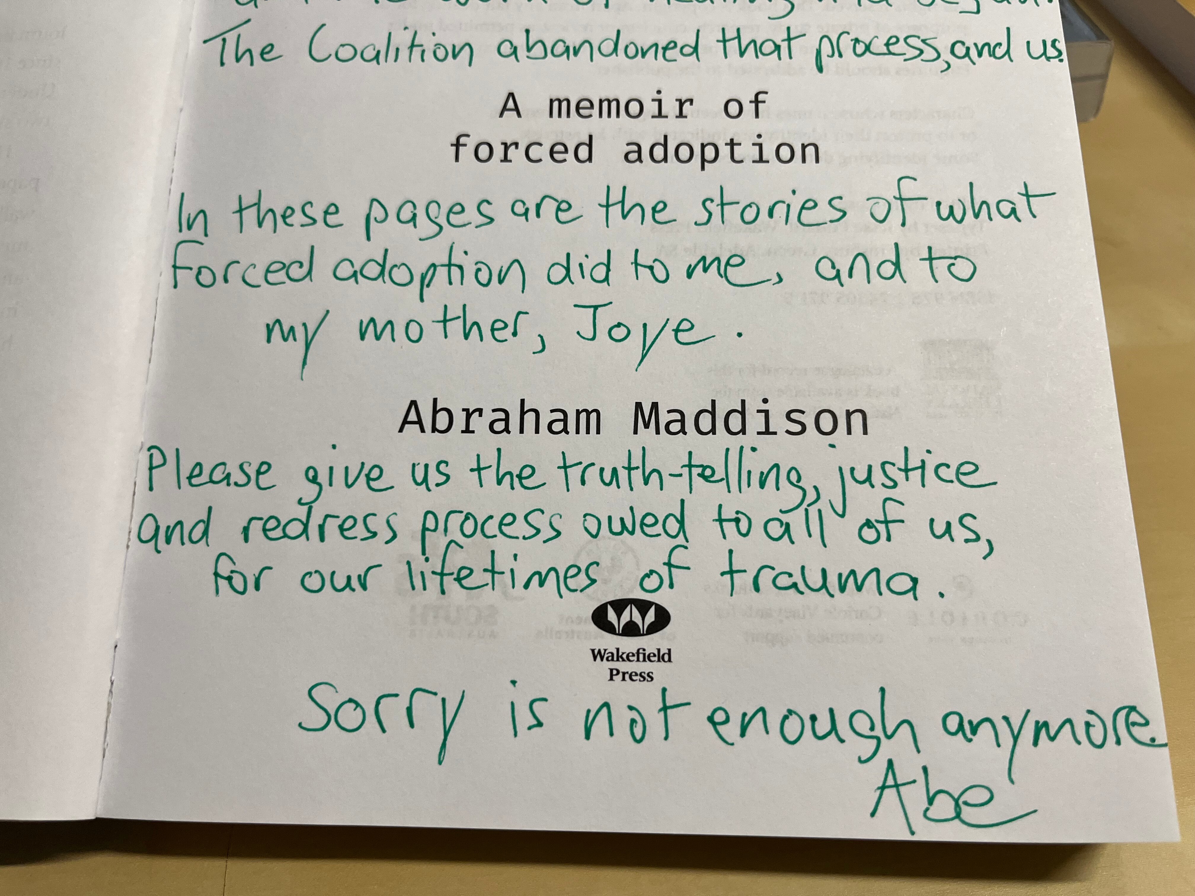Fellow adoptees will present his book, "Crazy Bastard" to the current Minister for Social Services, Amanda Rishworth at an event in Canberra today, marking the 10th anniversary of the national apology.