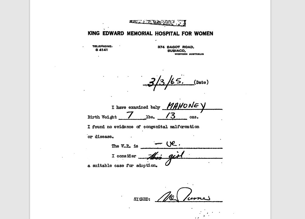 Under the forced adoption era, adopted people were given birth certificates with their adoptive parents' names listed.