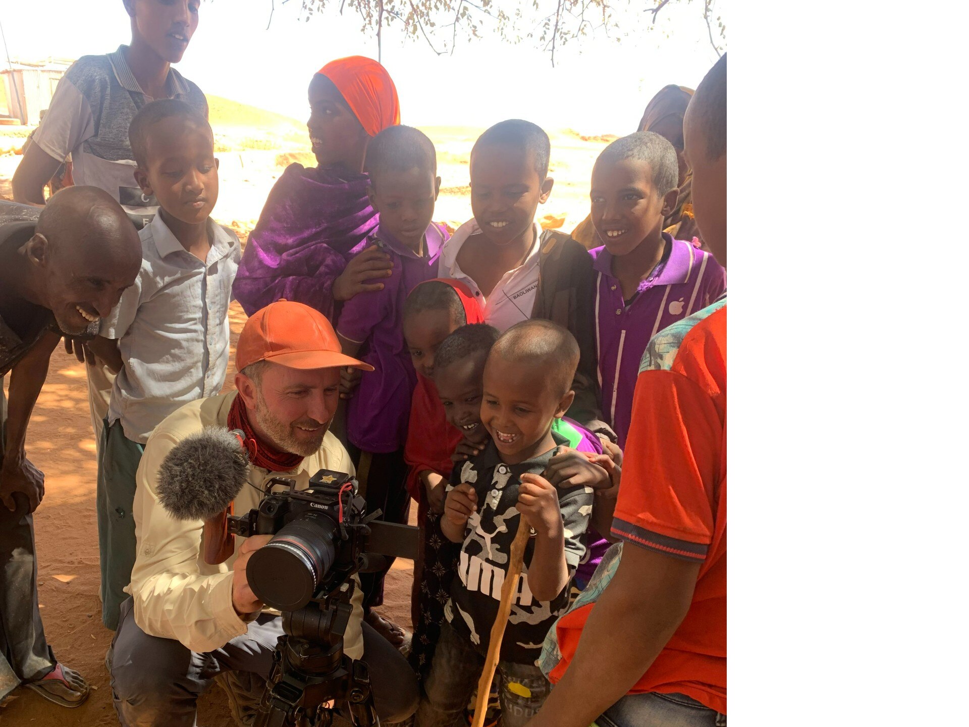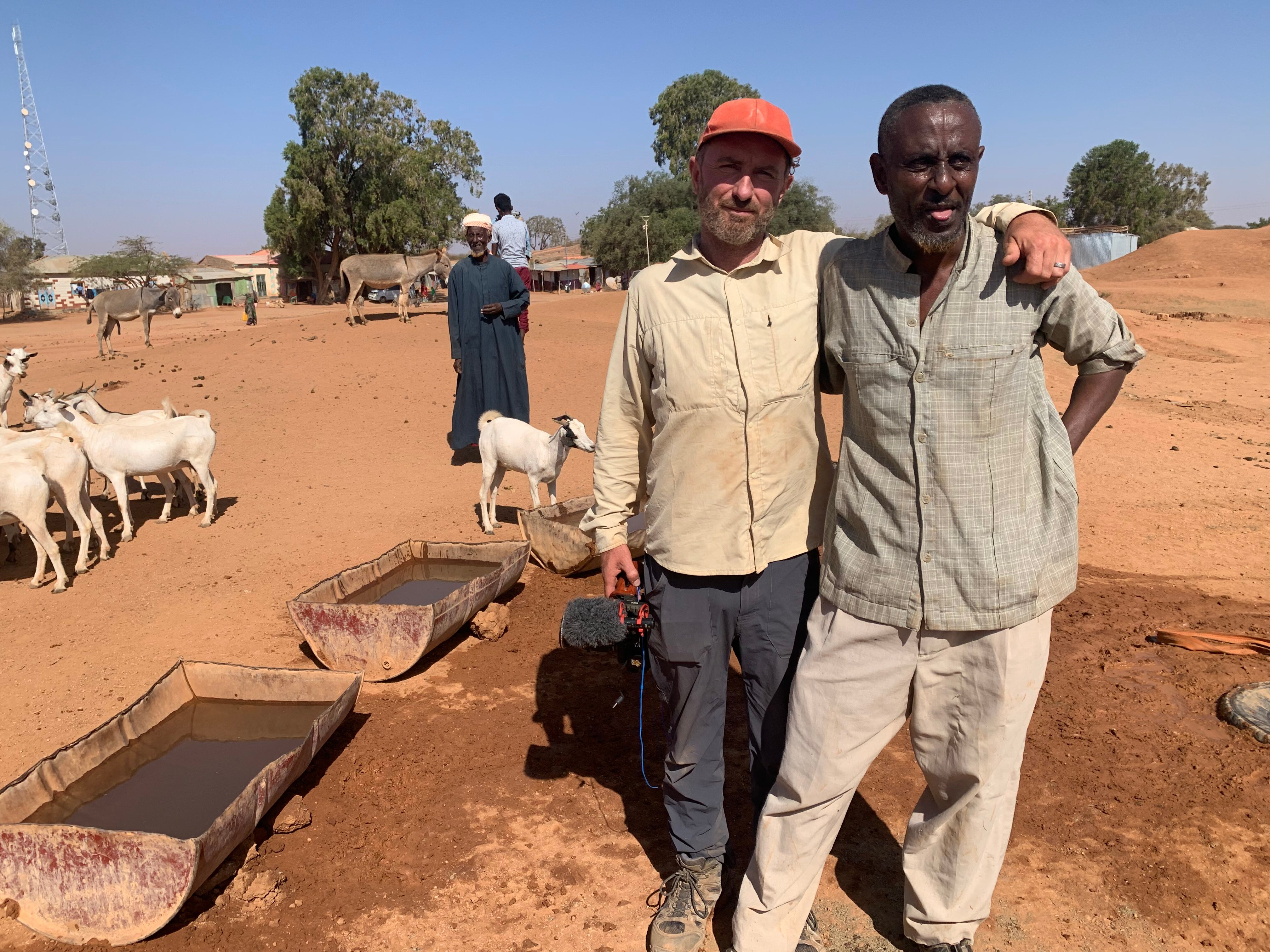 Saleban quickly became one of our favourite people on the shoot. He let us into his world – we walked with him for hours while he took his goats to find water. He showed us how he has to hit tree branches with a stick to try to dislodge any remaining leaves so his goats have something to eat – all the grass and pasture died months ago. It's all back-breaking work, and Matt Davis did an utterly commendable job keeping up with Saleban and filming in the crappiest of conditions.