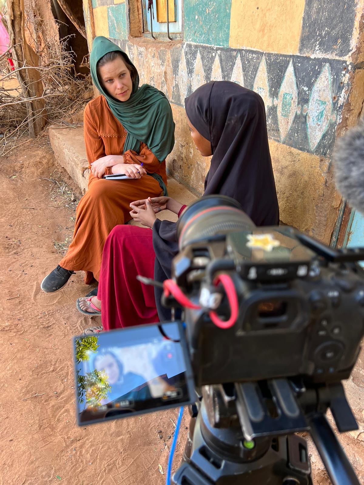 While we were talking, Aisha had been sitting down and was covered in a big colourful hijab. It was only when she got up and went to walk away that I caught a glimpse of her dress underneath. "Are you pregnant?" I asked. "Yes, seven months". Our security minders forced us to leave yet I couldn't believe I was walking away from this woman who had just walked for 300 km while pregnant. We made the decision to come back and find her again the next day.