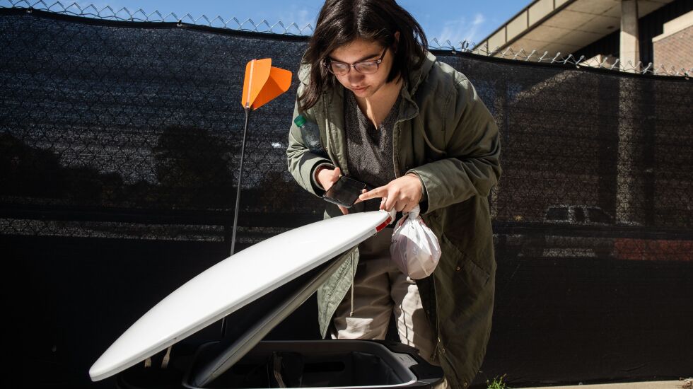 It stopped at its destination, and student Armando Fraire activated the lock from his phone. The sweet smell of orange chicken wafted from the robot.