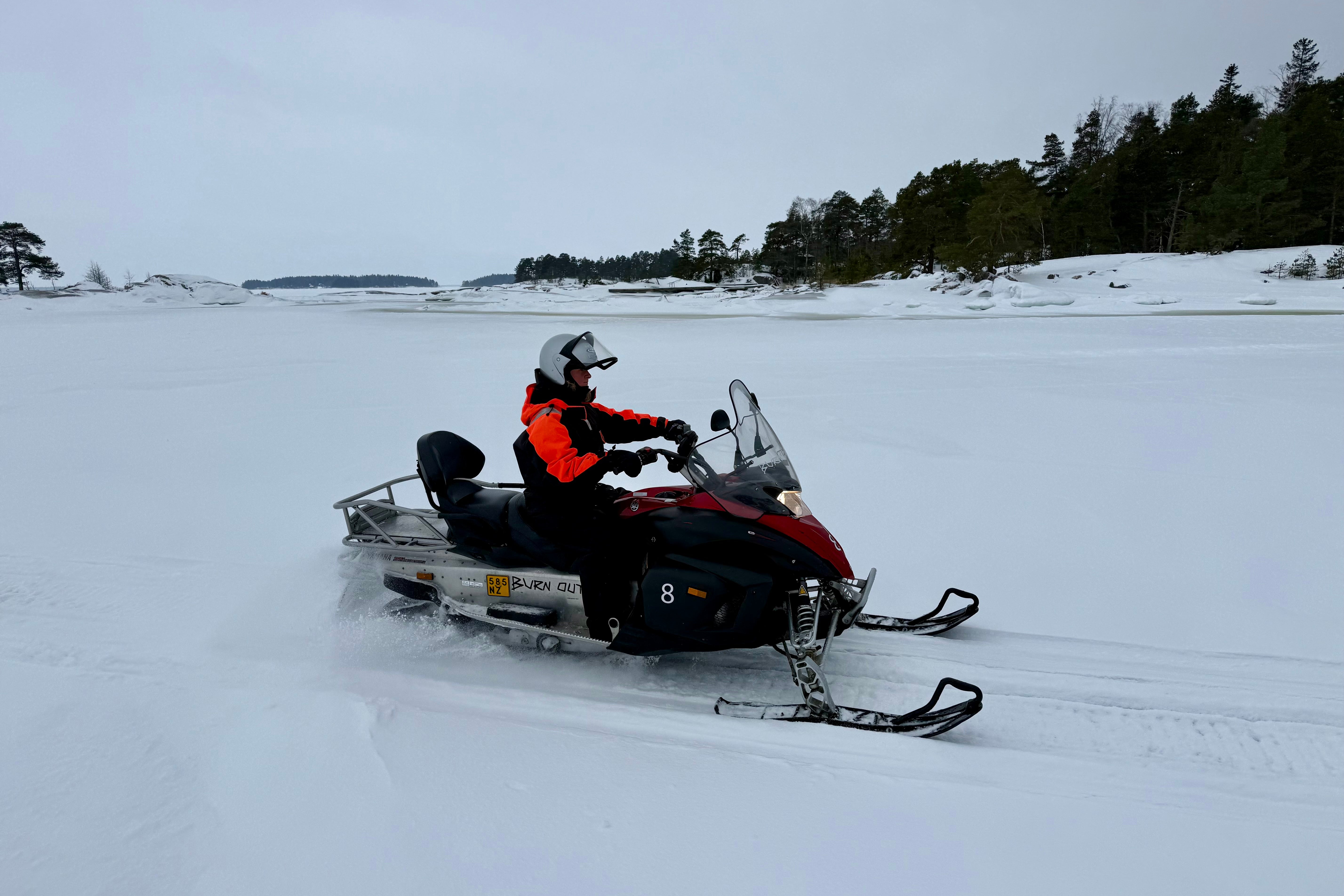 I’ve heard stories about the legendary “ice man” who knows how to speak with the ice, which fills me with visions of a wild, rugged beast of a human. In fact, when I get back to land and head to Joensuun Tila in Sipoo, east of Helsinki, I’m greeted by the friendly smile of Tuomas who shortly after meeting me has popped some hand warmers into my gloves and sent me off on a push sled to explore the area.