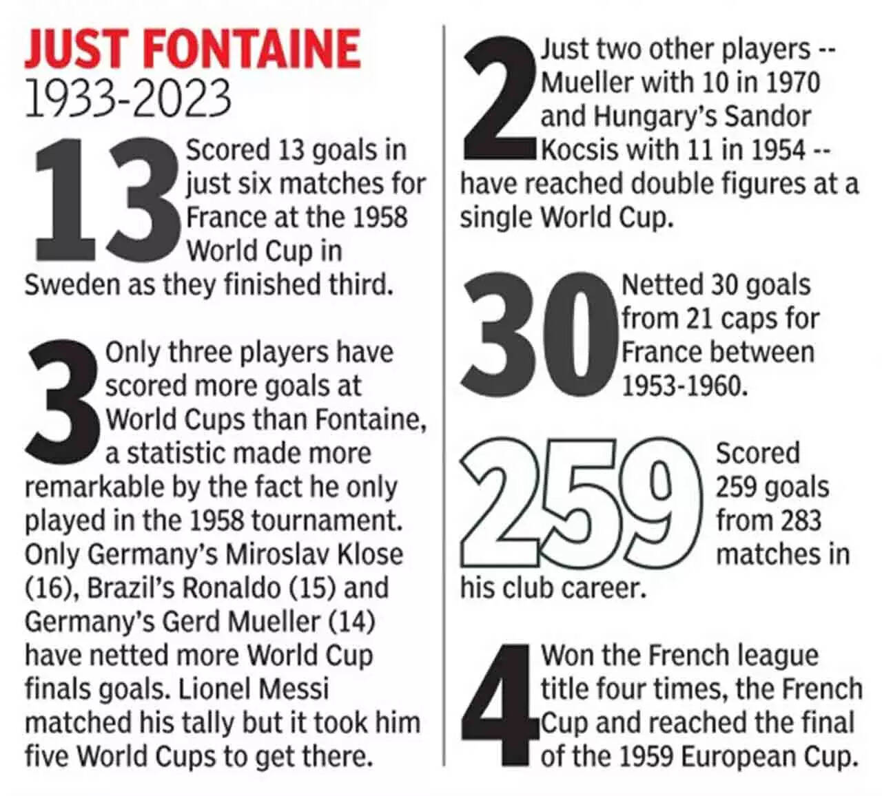 Fontaine was the all-time top-scorer in a single World Cup with 13 goals.