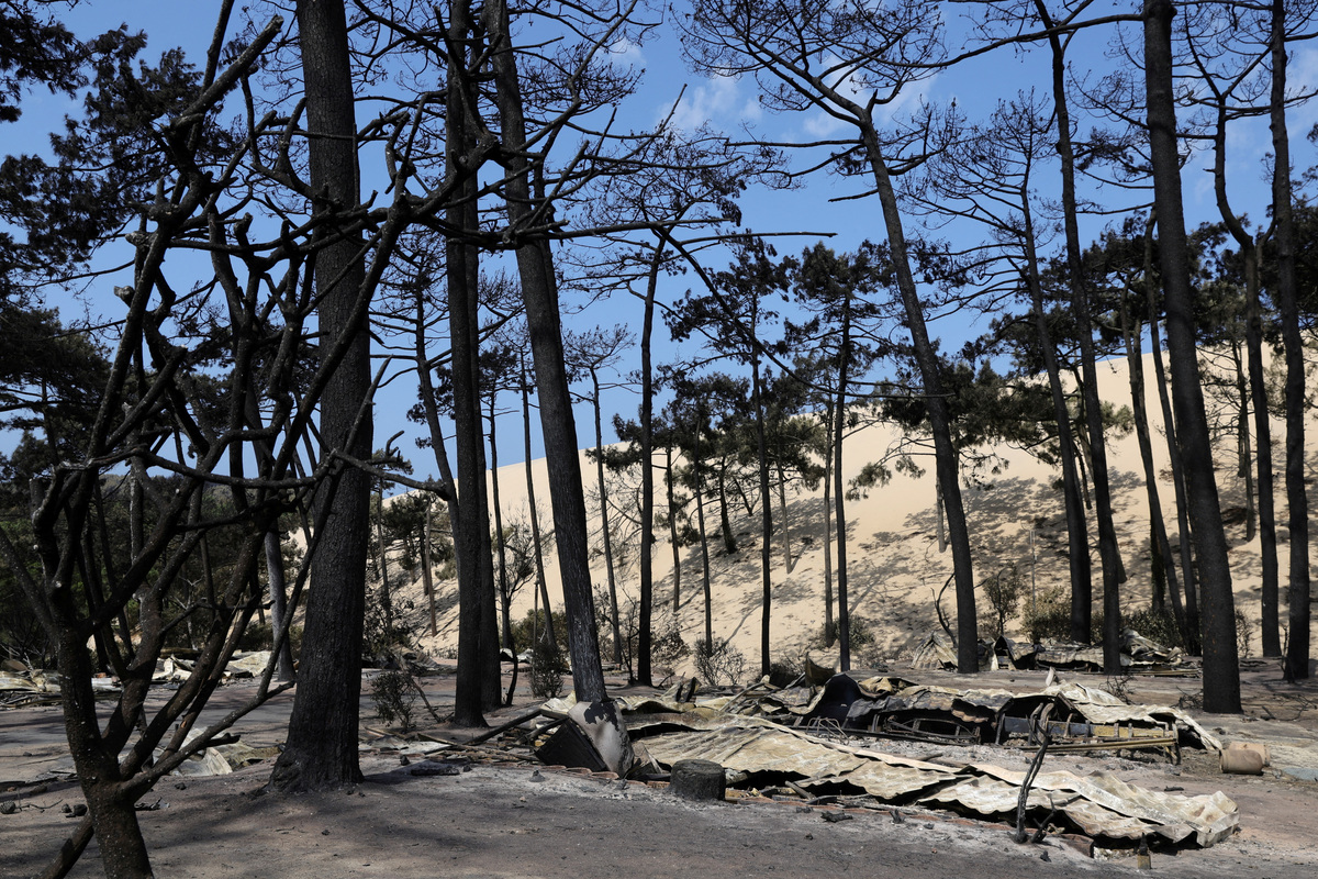 "Here we are, 17 years later, on the beach, looking at a fire that is spreading very close to our home in Haut Pilat," said Virtue, 64, speaking to Reuters on an empty beach as plumes of smoke darkened the sky.