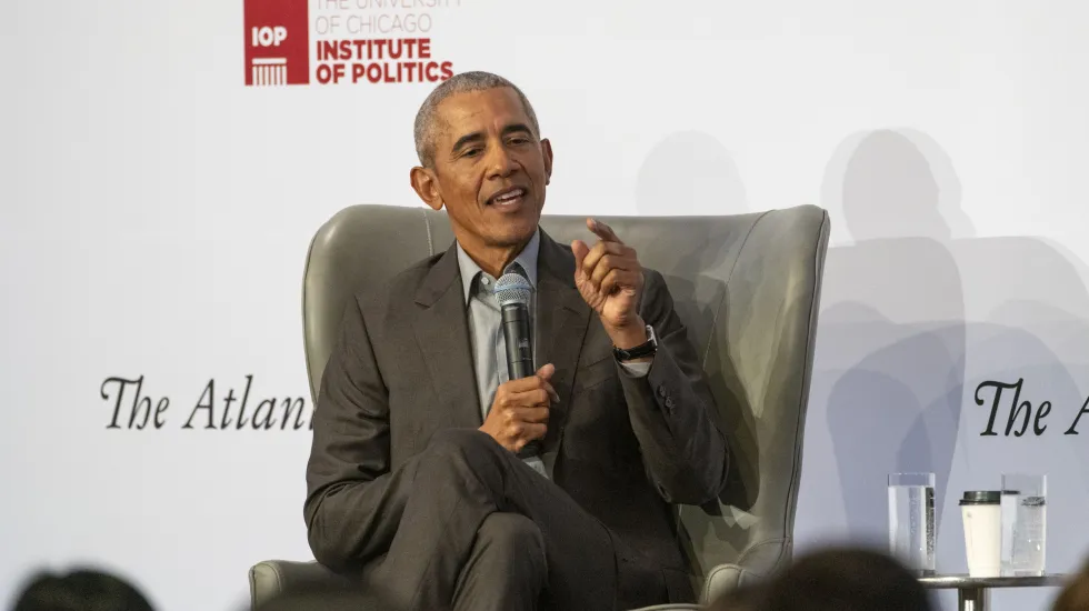 Prior to the event, Obama spoke with 12 University of Chicago Obama Foundation scholars about challenges to democracy and the impacts of disinformation, according to the Obama Foundation, whose head Valerie Jarrett later attended the former president’s event.