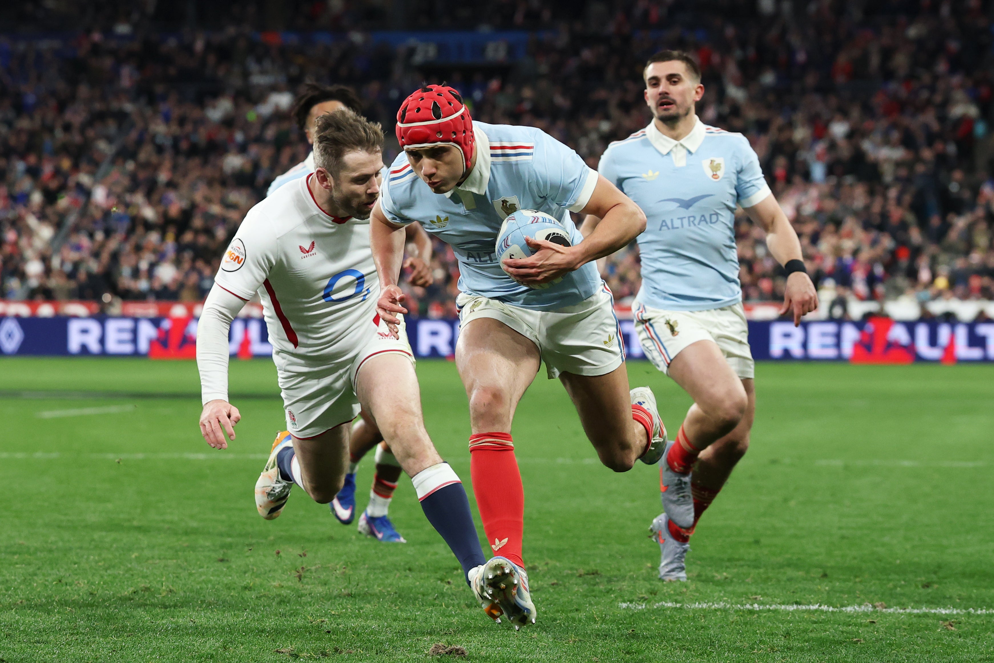 Saturday 14 March 2026 20:17 , Ciara Fearn4 mins: France win a turnover from Cros inside their own half and quickly look to counter.