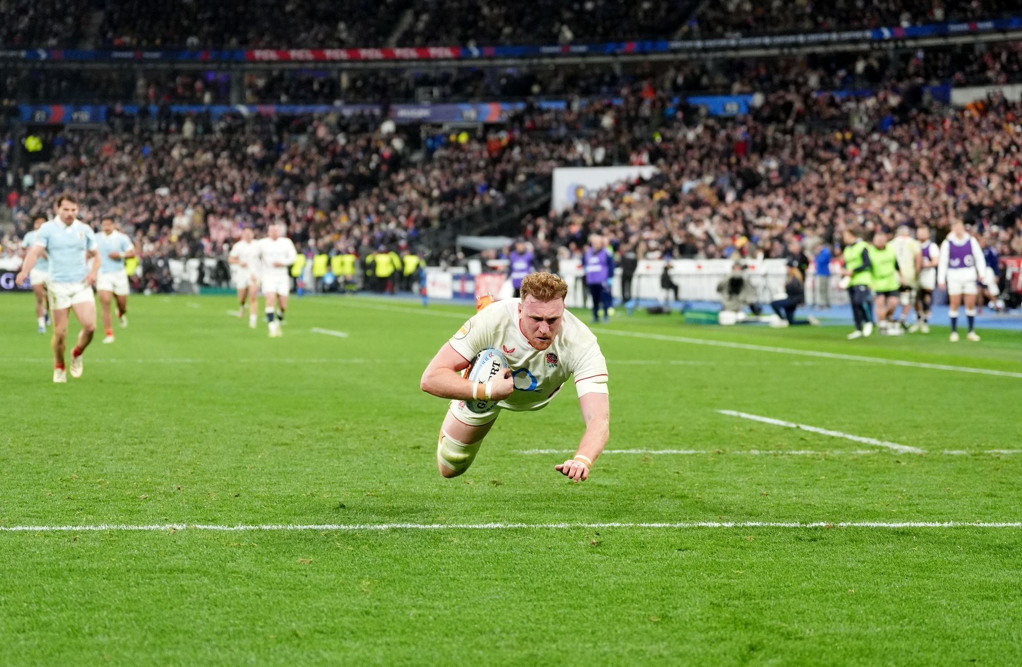 Saturday 14 March 2026 21:28 , Ciara Fearn51 mins: Ollie Chessum produces a stunning solo try reading a pass inside his own half, intercepting and racing away to the line.