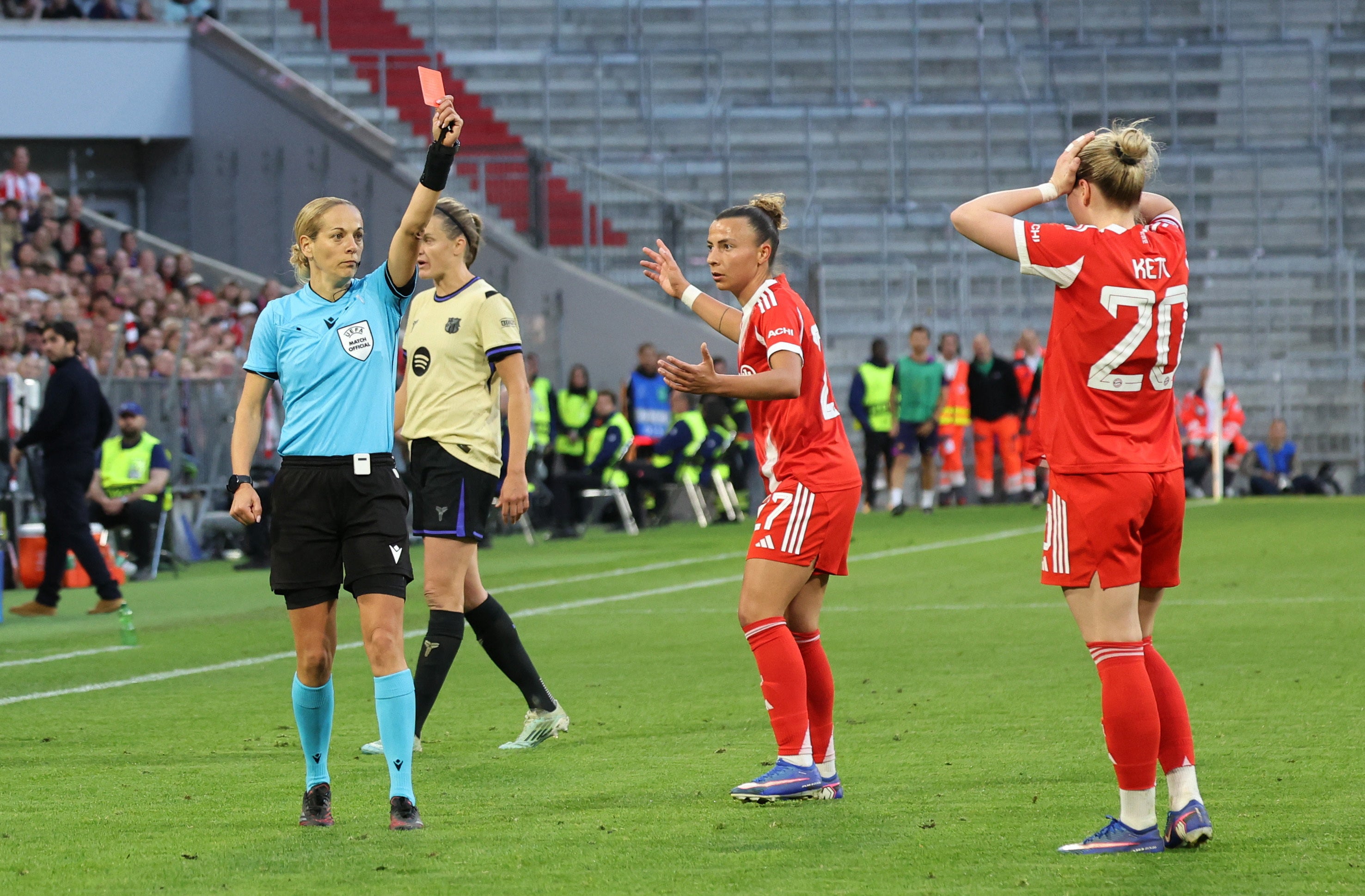Franziska Kett scores and sees bizarre red as Bayern hold Barcelona in Women’s Champions League