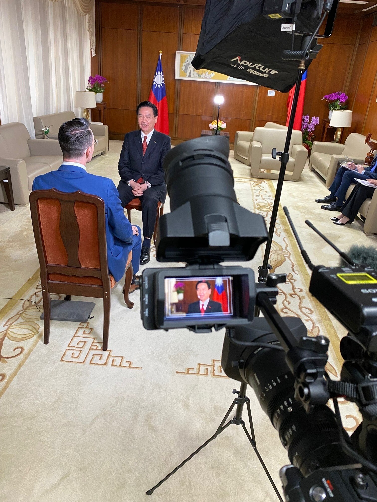Interviewing Taiwan's foreign minister Joseph Wu. (Supplied: Bill Birtles)
