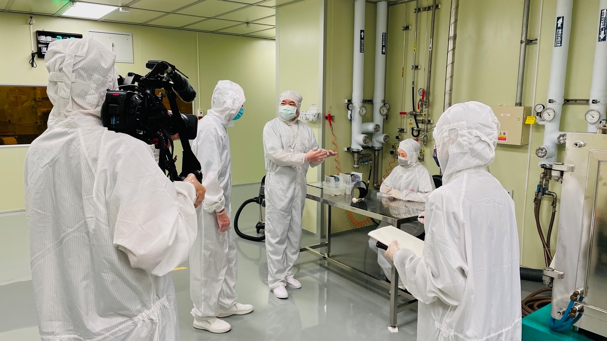 Filming at a semiconductor research lab in Hsinchu, Taiwan. (Supplied: Bill Birtles)
