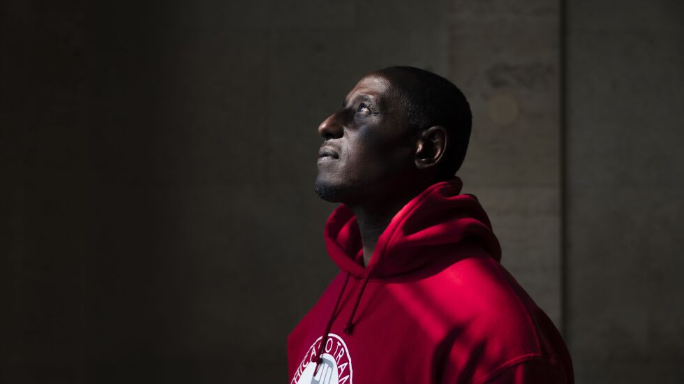 Joe Burnett, a former substance user who was caught selling drugs, talks about the “miracle” of graduating from a Cook County Drug Court. He landed a job with the Chicago Transit Authority. (Anthony Vazquez / Sun-Times)