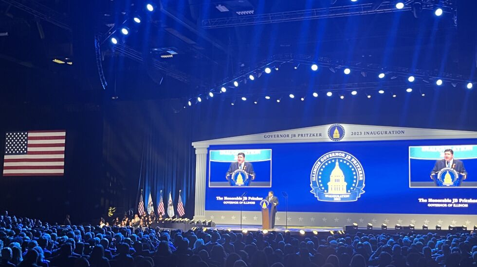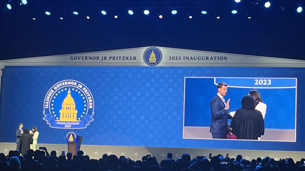 Pritzker’s 25-minute inaugural address was reflective and optimistic — and very different than previous inaugural addresses that ticked off many of the state’s deep problems. It also offered a glimpse — but not a lot of details — into his second-term policies, which took a backseat during a contentious political battle against Republican gubernatorial nominee Darren Bailey.