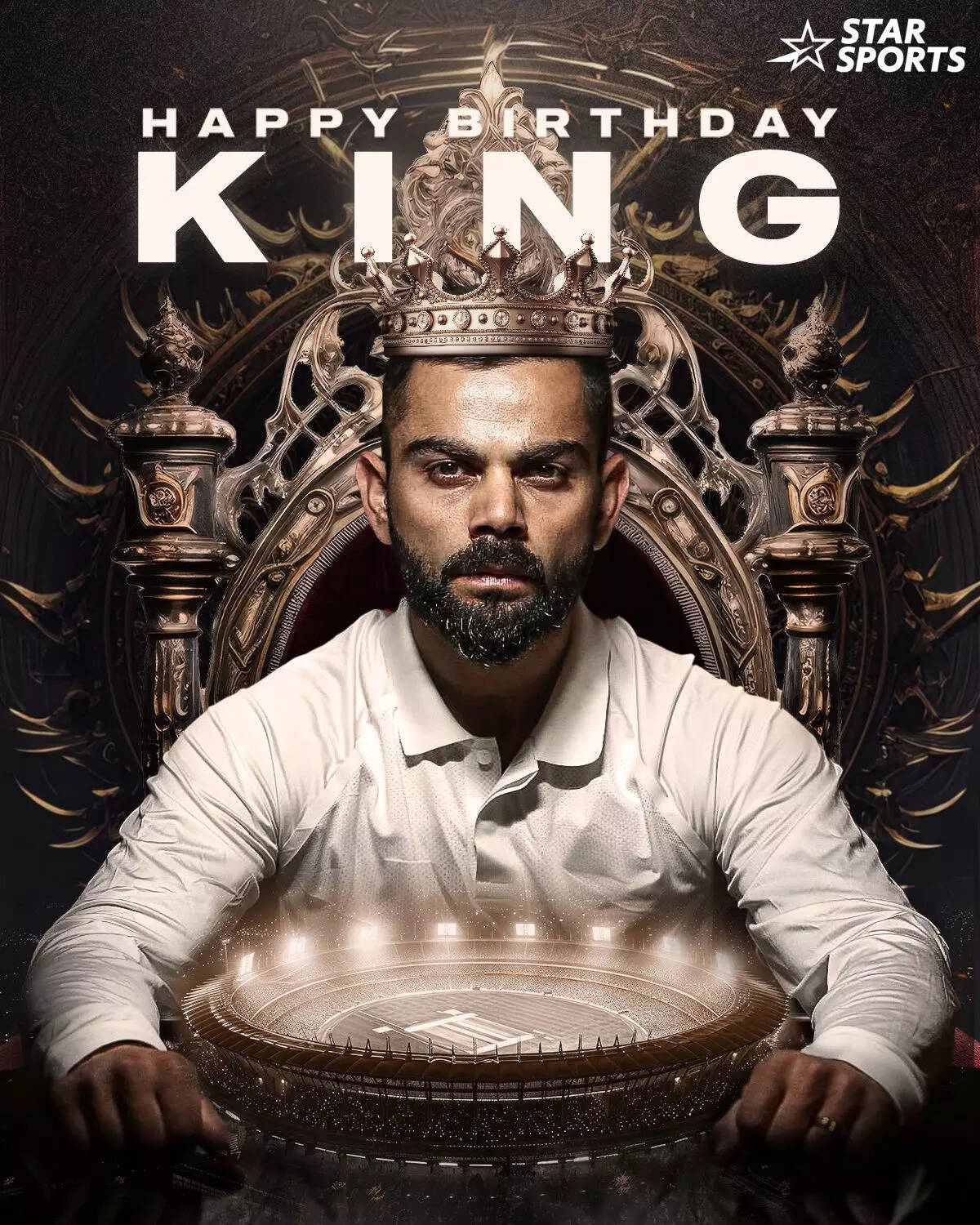 Star Sports came up with a poster of Kohli sitting on a royal chair wearing a crown, with his kingdom, the cricket field, in front. "Happy Birthday, King," it said.