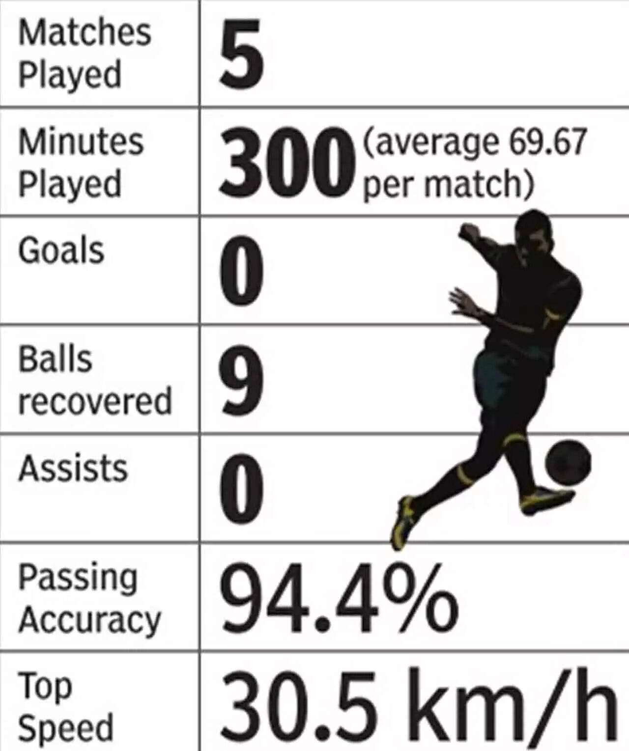His tender age never became a deterrent as he took charge of the midfield and caught the eye with his silken turns and sudden acceleration. Mainoo's poise, balance, intelligence and work ethic will serve England for many years to come.