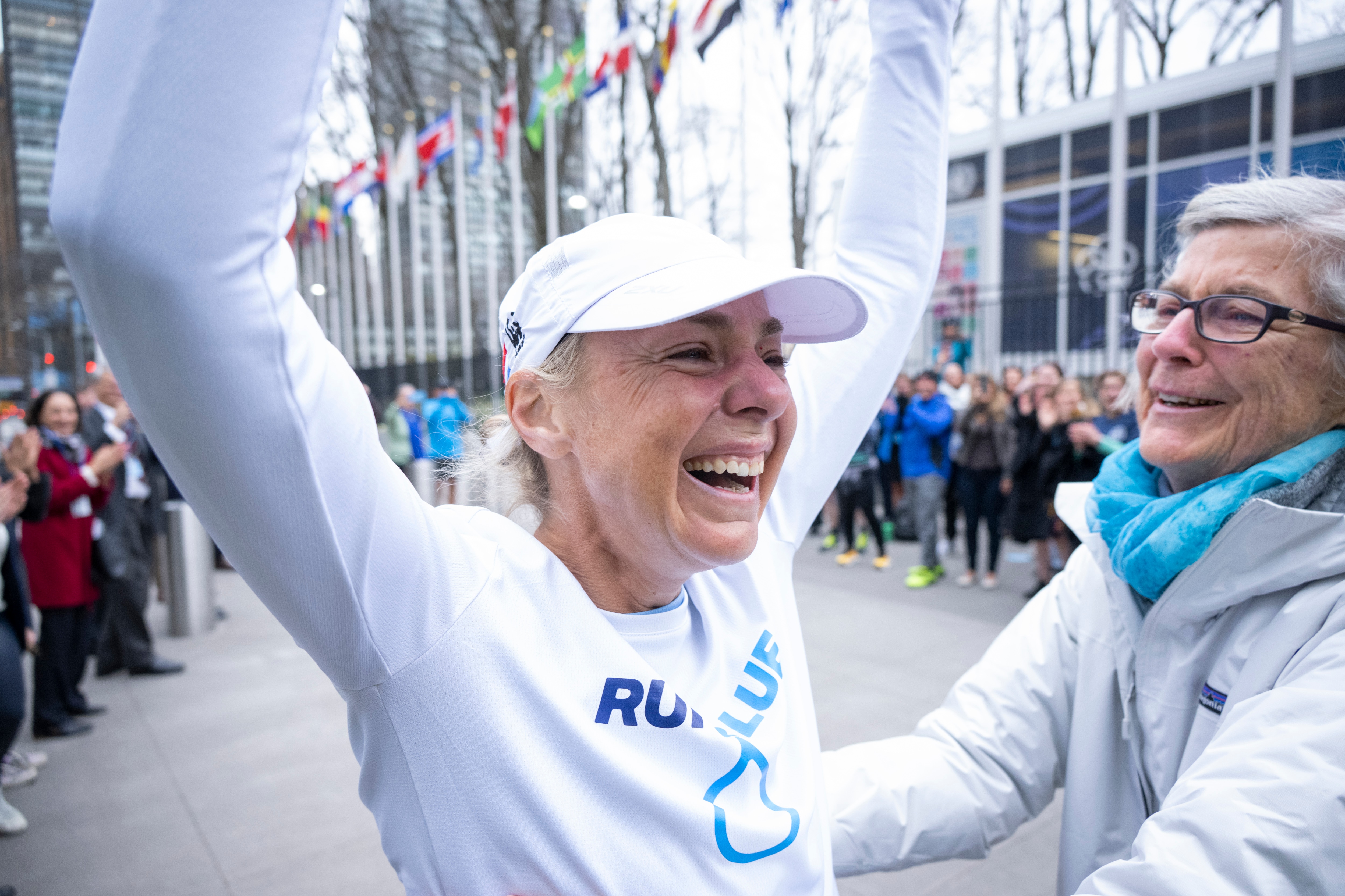 Mina Guli's body is broken and battered as she runs up to the steps of the United Nations in New York having just completed her 200th marathon in a year, traversing 8,440 kilometres across the world and arriving at the first UN Water Conference in 46 years.