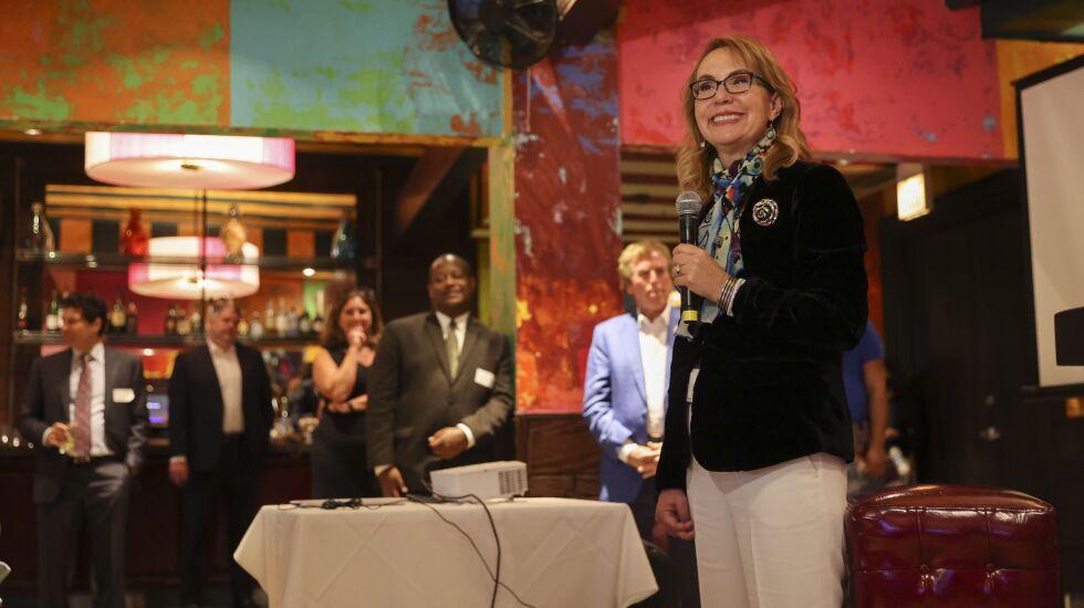 “Our lives can change so quickly — mine did when I was shot,” Giffords said while addressing the crowd. “But I never lose hope … We are living in a challenging time but we are up for the challenge.”