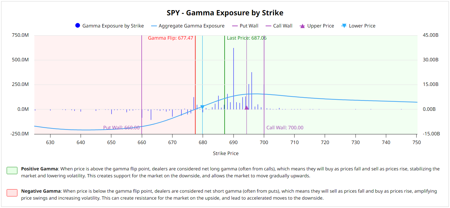 Traders can use gamma exposure to identify volatility conditions and plan strategies around them: