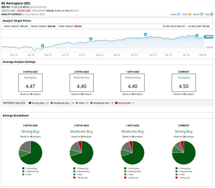 GE’s mean price target of $352.44 represents a 13.7% premium. Meanwhile, the Street-high target of $387 suggests a notable 24.9% upside potential from current price levels.
