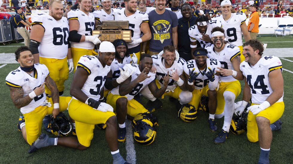 No. 2 Michigan got 12 first-place votes and 1,436 points but nearly was passed by No. 3 Texas, which received 10 first-place votes and 1,426 points. Both the Wolverines and Longhorns won big on Saturday.