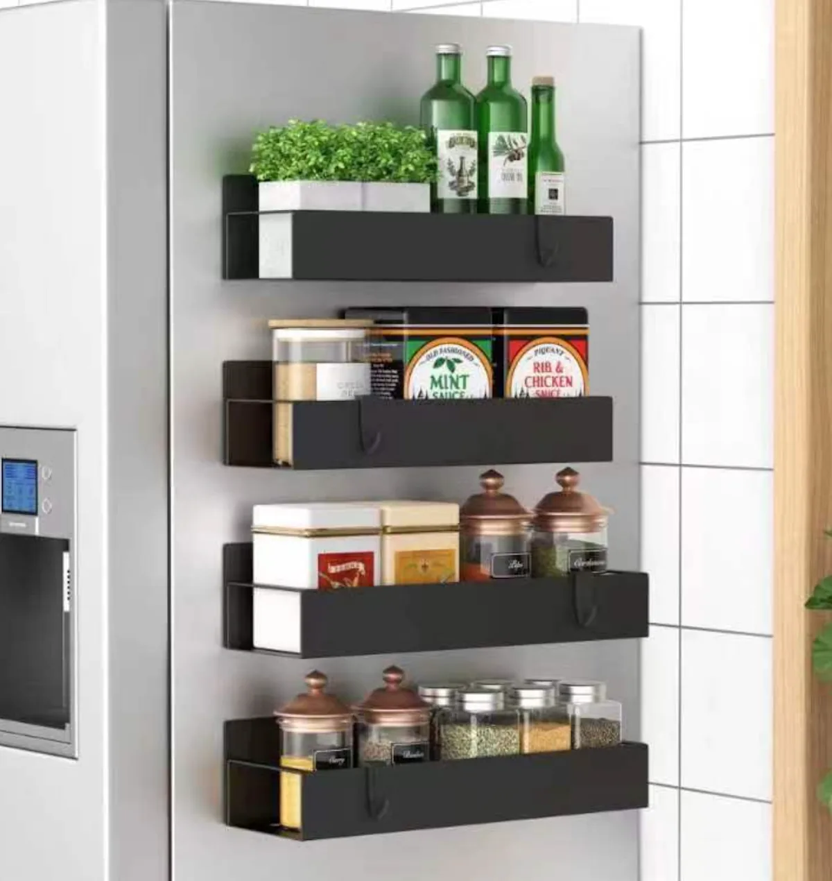 A magnetic spice rack that holds up against heat & humidity