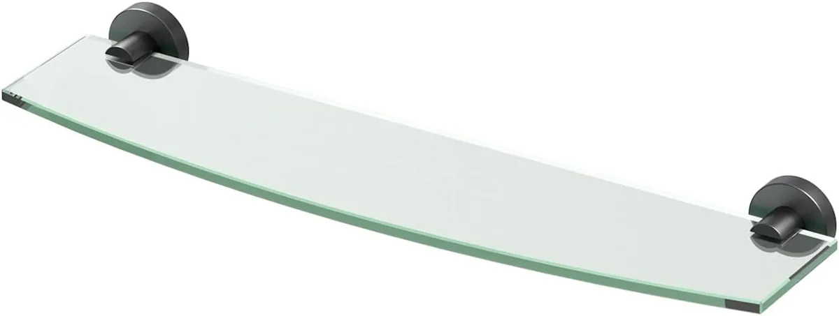 Glass shelving that comes in 3 sleek metal finishes to match any bathroom