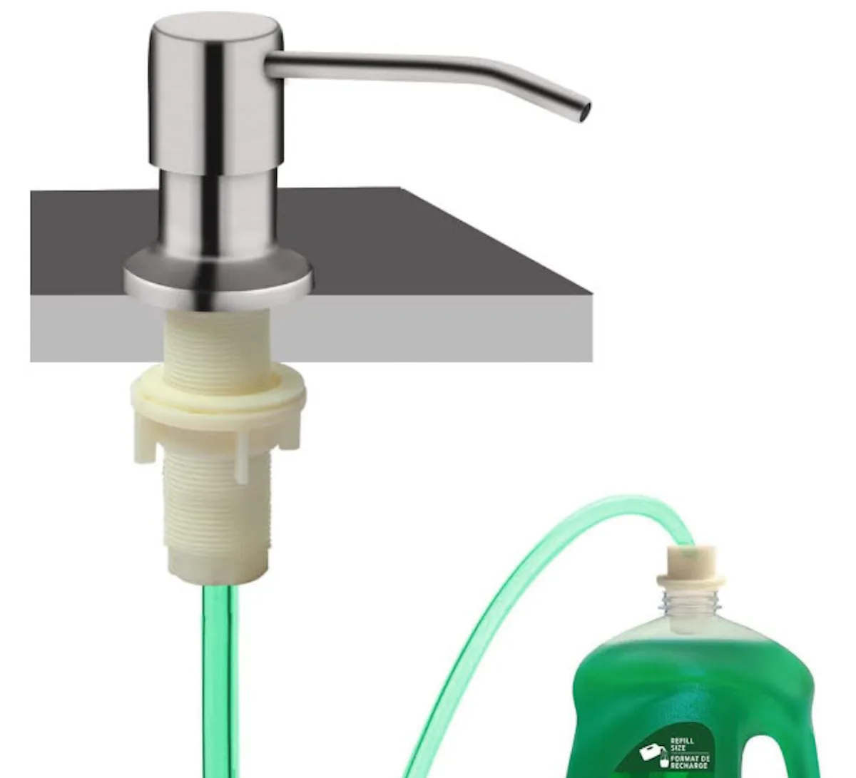 According to Thomas Borcherding, owner and lead designer at Homestar Design Remodel, “Having a built-in soap dispenser allows you to remove the unsightly dish soap bottle from your countertop and makes doing the dishes easier.” Its brushed nickel finish looks gorgeous on your bathroom countertop. Not only that, but it resists rust and corrosion, which is great for the kitchen and bathroom. When you buy, you'll also receive a refilling tube that minimizes mess.