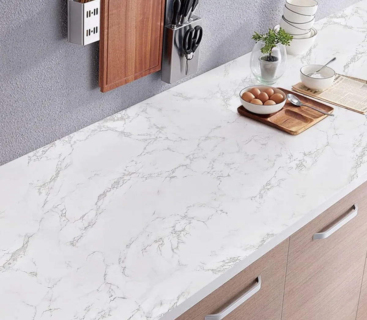 This marble wallpaper is a hassle-free way to elevate your walls and furniture. “Use it on countertops, shelves, or small tables for a quick facelift,” says Mike Milad, owner of RGB House Painters. “It’s an easy hack for staging or refreshing older surfaces without replacing them.” Made of smooth PVC, it’s waterproof, so it’s great for the kitchen. It’s also easy to wipe down whenever it needs a refresh.