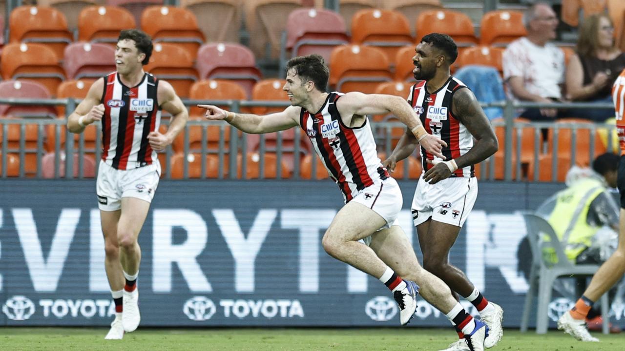Goals to Harry Rowston and Ryan Angwin briefly stopped the bleeding but Max Hall pounced on another GWS error to ensure the Saints won the second quarter and were ahead by 32 at halftime.